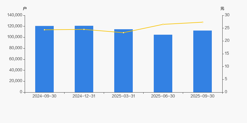 2024年9月30日至今,公司股东户数有所下降,区间跌幅为6.96%。2024年9月30日至2025年9月30日区间股价上涨12.14%。