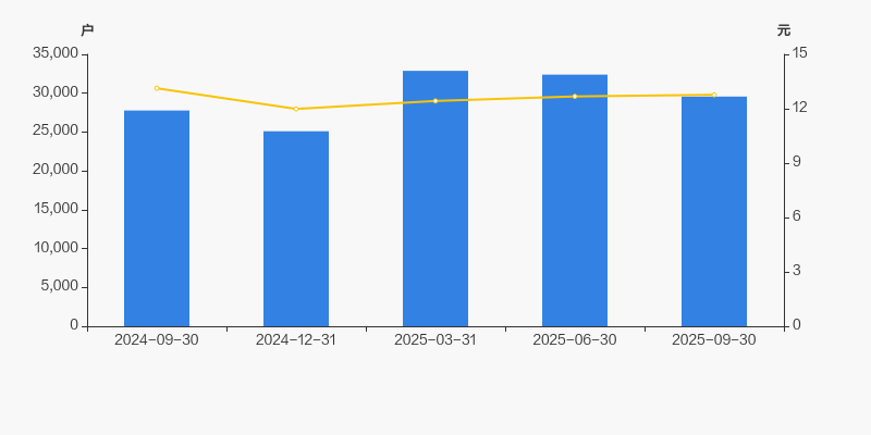 2024年9月30日至今,公司股东户数有所增长,区间涨幅为6.45%。2024年9月30日至2025年9月30日区间股价下降2.74%。