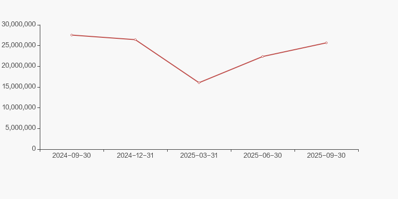 截至2025年9月30日,公司最新总股本为5.6亿股,其中流通股本为4.51亿股。户均持有流通股数量由上期的2.93万股下降至1.83万股,户均流通市值36.57万元。