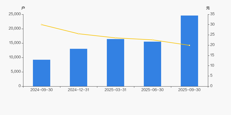 2024年9月30日至今,公司股东户数成倍增长,区间涨幅达166.72%。2024年9月30日至2025年9月30日区间股价下降33.58%。