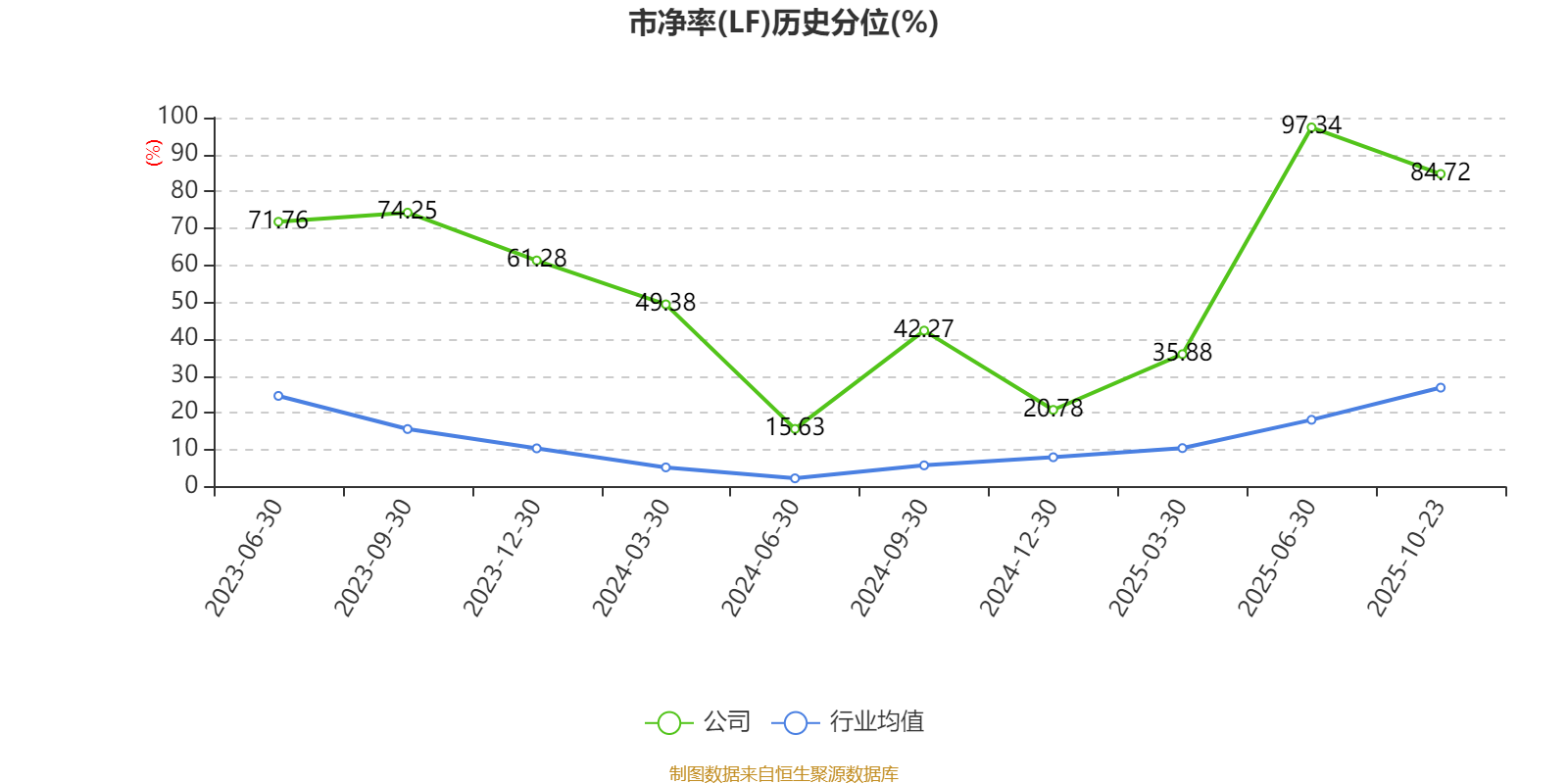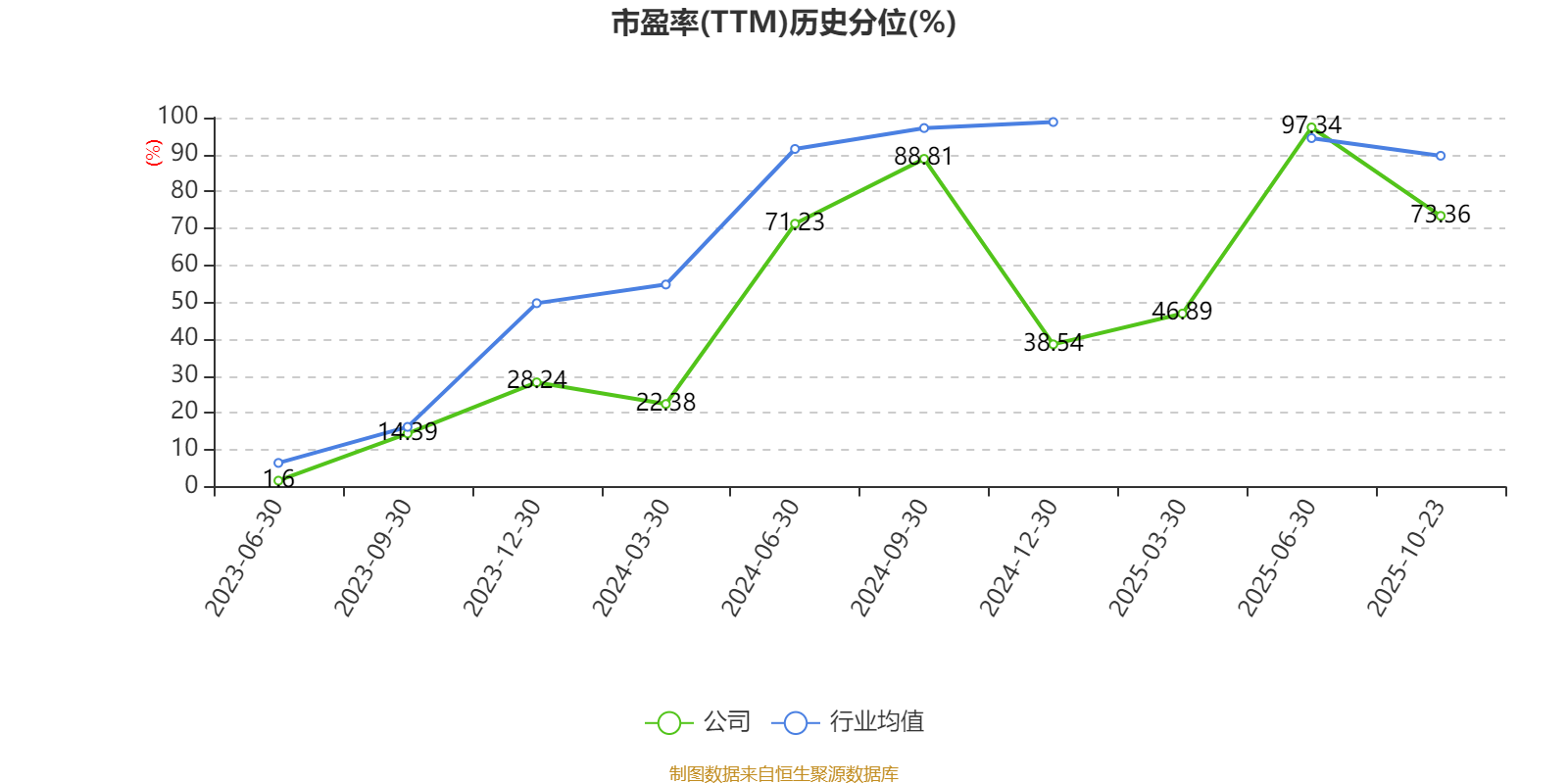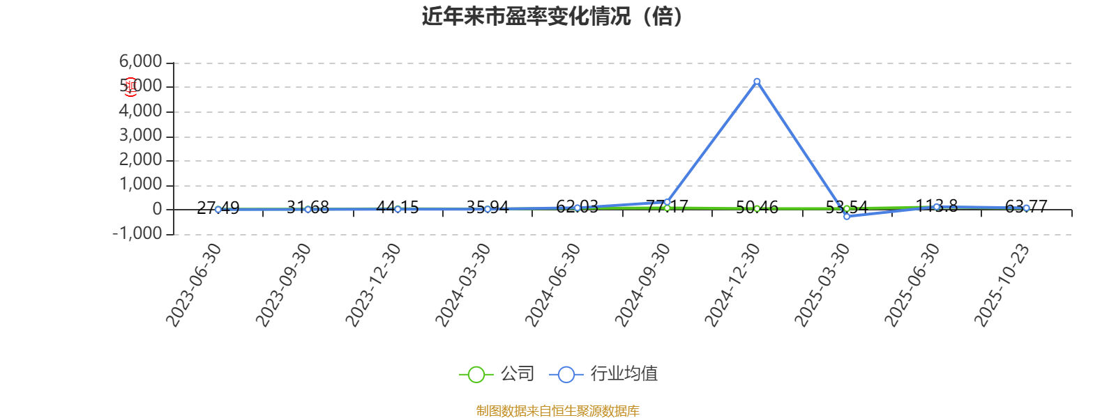 市盈率、市净率为负时,不显示当期分位数,会导致折线图中断。