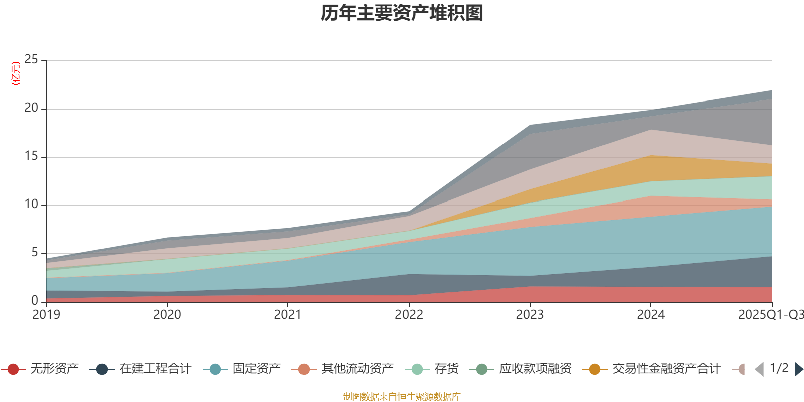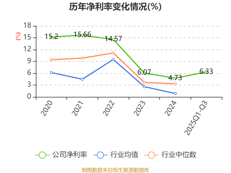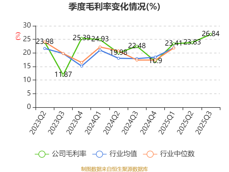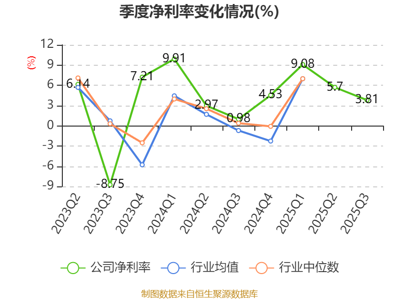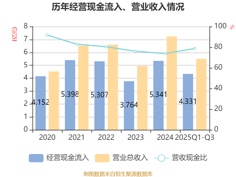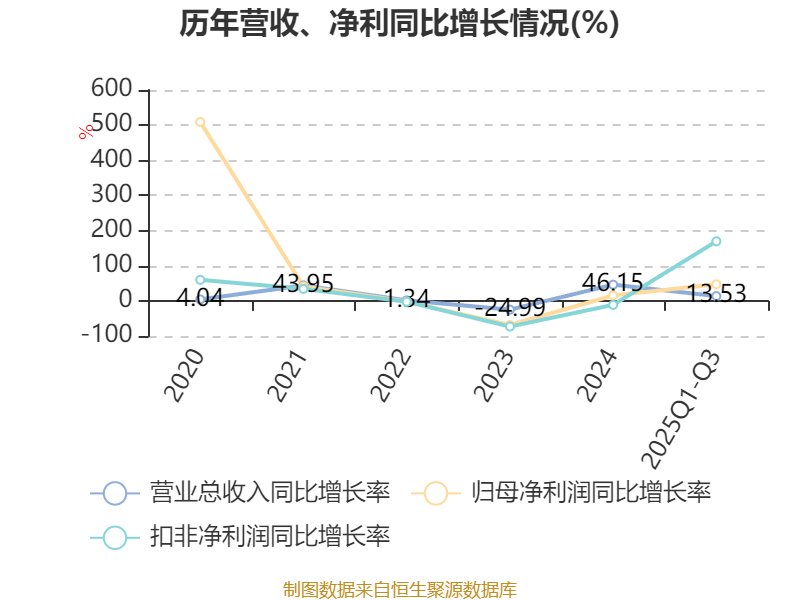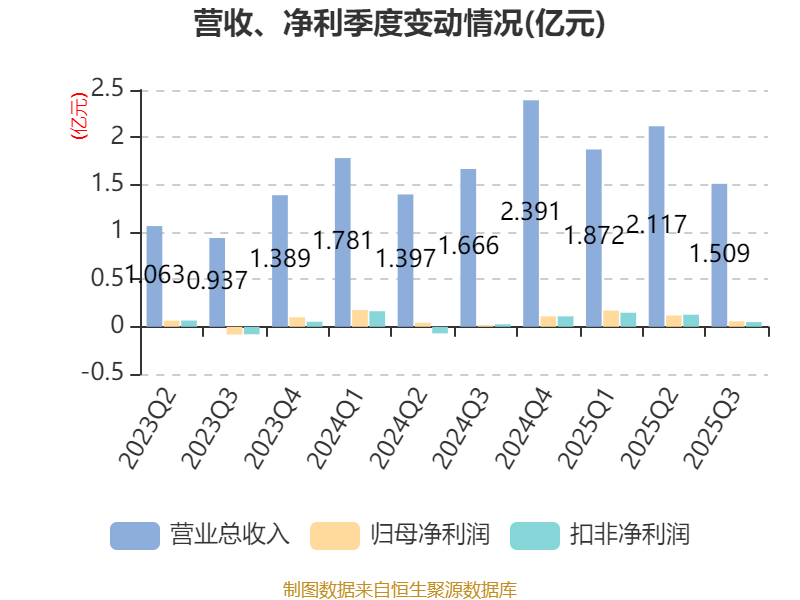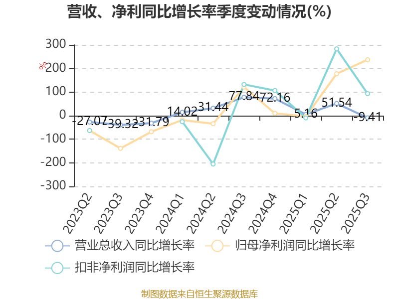 资产重大变化方面,截至2025年三季度末,公司货币资金较上年末增加244.61%,占公司总资产比重上升14.88个百分点;交易性金融资产合计较上年末减少51.9%,占公司总资产比重下降7.68个百分点;其他流动资产较上年末减少66.82%,占公司总资产比重下降7.58个百分点;应收票据及应收账款较上年末减少28.25%,占公司总资产比重下降4.67个百分点。