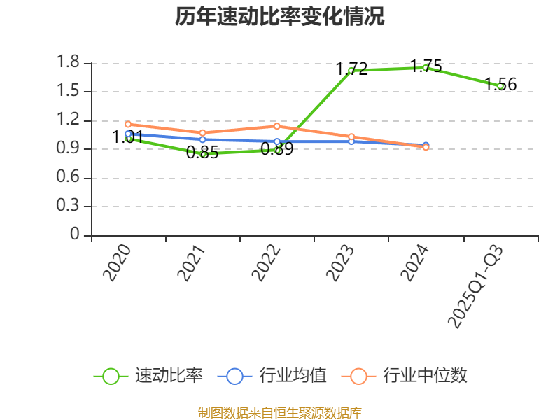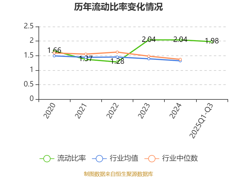 2025年前三季度,公司流动比率为1.98,速动比率为1.56。
