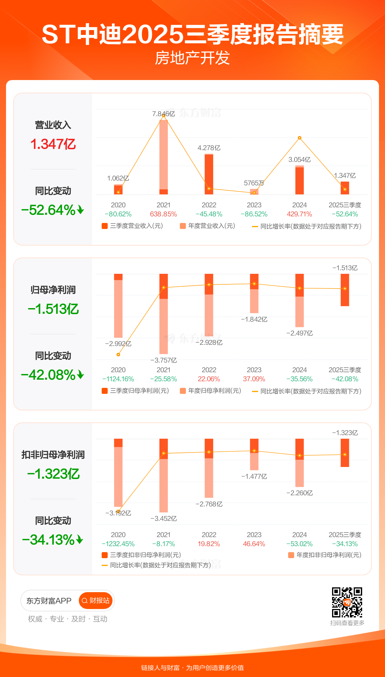图解财报:ST中迪前三季归母净利润-1.51亿元