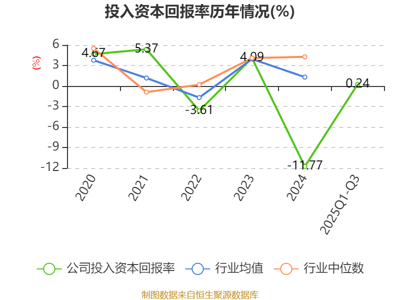 盈利能力方面, 2025年前三季度公司加权平均净资产收益率为0.15%,同比上升7.66个百分点。公司2025年前三季度投入资本回报率为0.24%,较上年同期下降0.81个百分点。