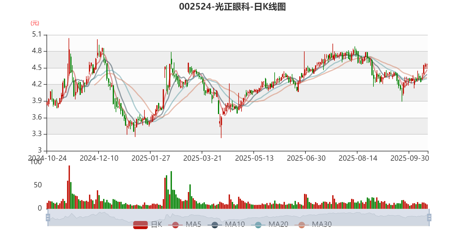 中证智能财讯光正眼科(002524)10月24日披露2025年第三季度报告。前三季度公司实现营业总收入6.63亿元,同比下降5.05%;归母净利润17.34万元,同比扭亏;扣非净利润亏损917.53万元,上年同期亏损2943.14万元;经营活动产生的现金流量净额为5370.55万元,同比增长29.13%;报告期内,光正眼科加权平均净资产收益率为0.15%。