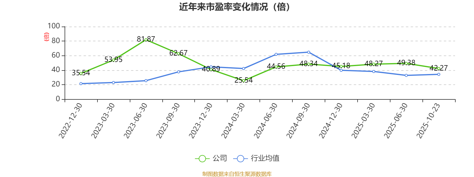 以10月23日收盘价计算,宝丽迪目前市盈率(TTM)约为42.27倍,市净率(LF)约3.05倍,市销率(TTM)约4.18倍。