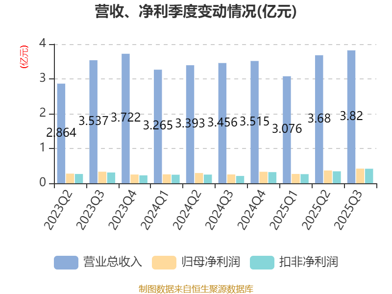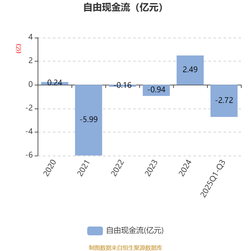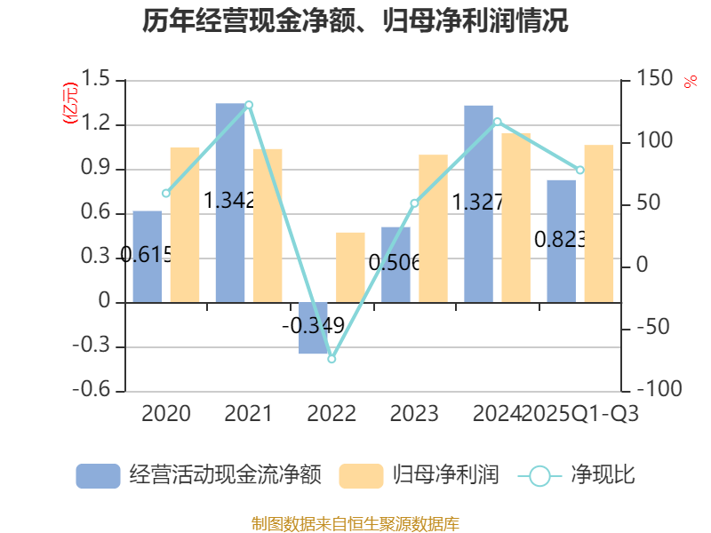 2025年前三季度,公司经营活动现金流净额为8233.55万元,同比下降4.76%;筹资活动现金流净额-2240.51万元,同比增加2144.66万元;投资活动现金流净额-3.04亿元,上年同期为-2531.16万元。
