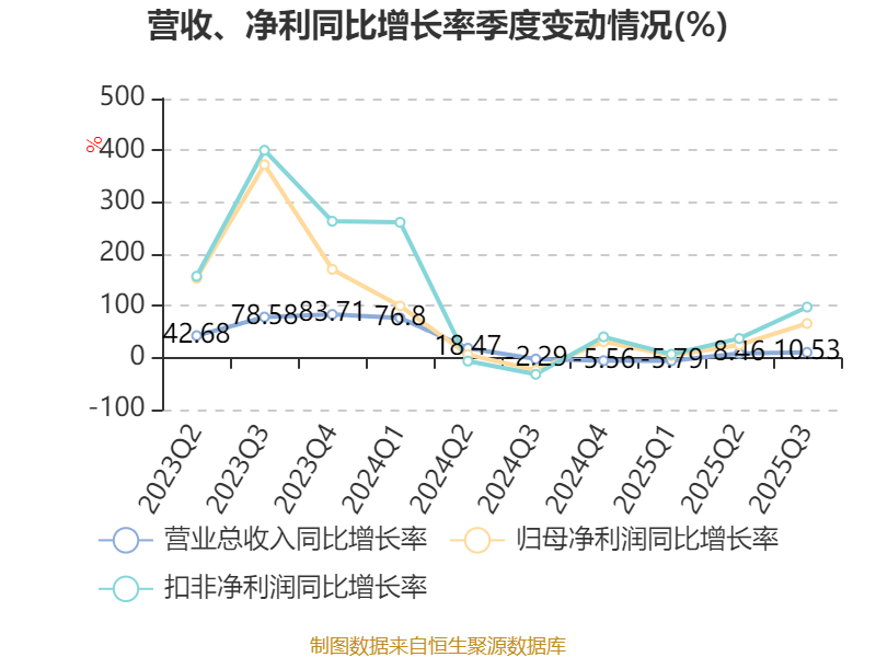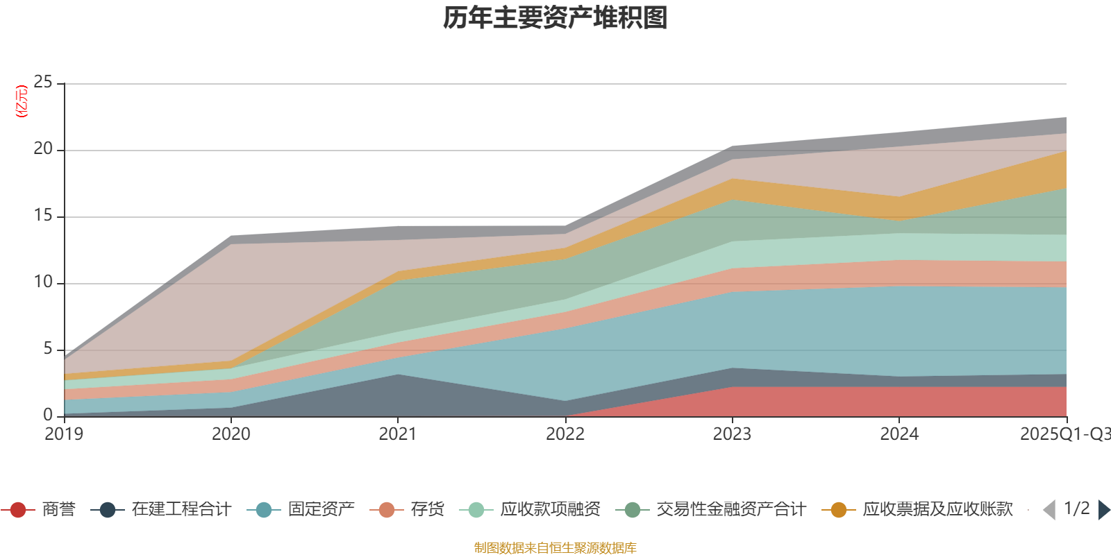资产重大变化方面,截至2025年三季度末,公司货币资金较上年末减少64.95%,占公司总资产比重下降11.8个百分点;交易性金融资产合计较上年末增加285.07%,占公司总资产比重上升11.32个百分点;应收票据及应收账款较上年末增加52.37%,占公司总资产比重上升3.85个百分点;固定资产较上年末减少3.92%,占公司总资产比重下降2.79个百分点。