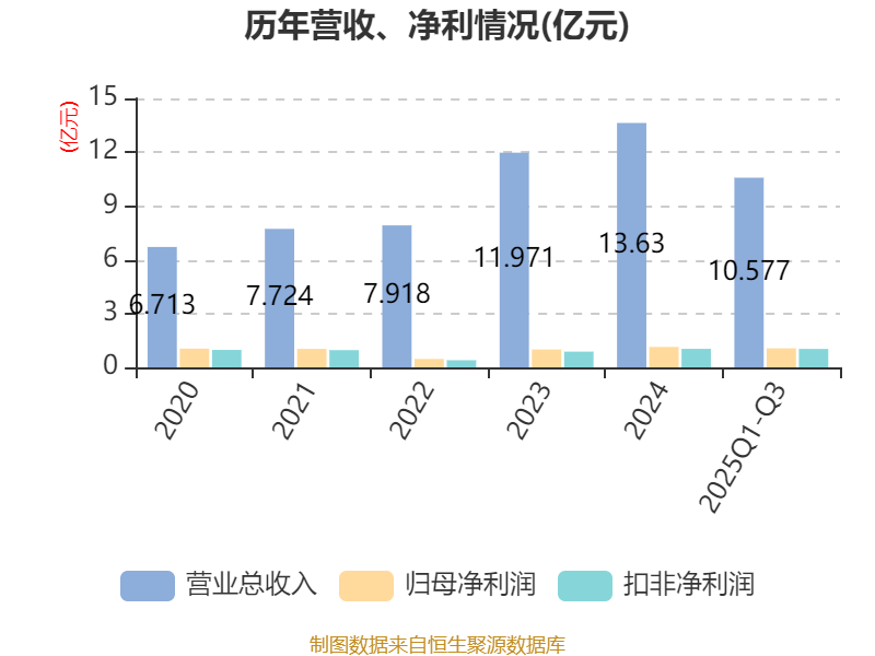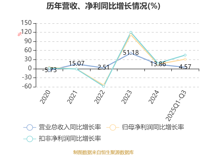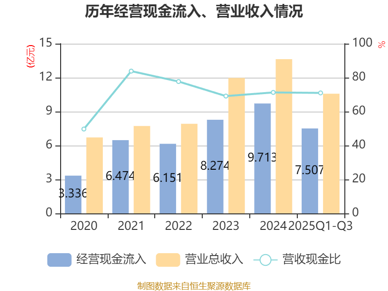 2025年前三季度,公司流动比率为6.14,速动比率为5.13。