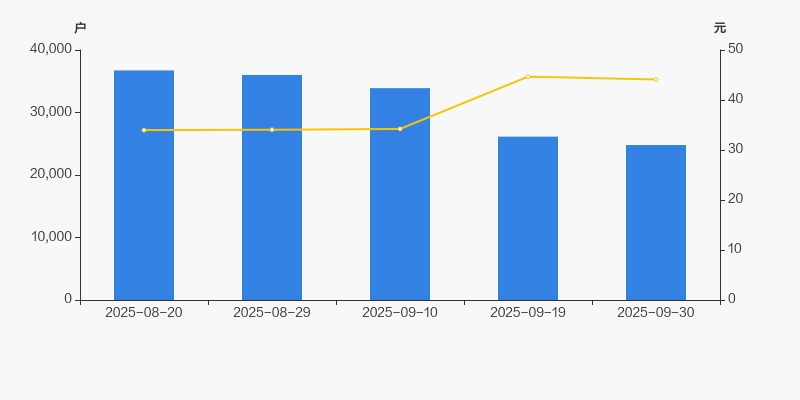 自2025年8月20日以来,公司股东户数连续4期下降,截至目前减幅为32.51%。2025年8月20日至2025年9月30日区间股价上涨29.80%。