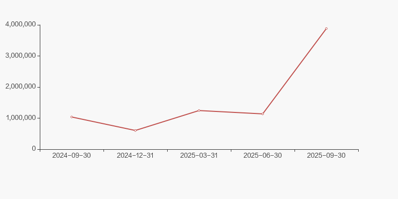 截至2025年9月30日,公司最新总股本为4.1亿股,其中流通股本为7102.4万股。户均持有流通股数量由上期的4980股下降至4396股,户均流通市值31.51万元。