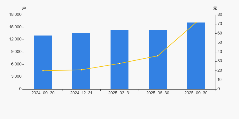 2024年9月30日至今,公司股东户数显著增长,区间涨幅为24.30%。2024年9月30日至2025年9月30日区间股价上涨260.18%。