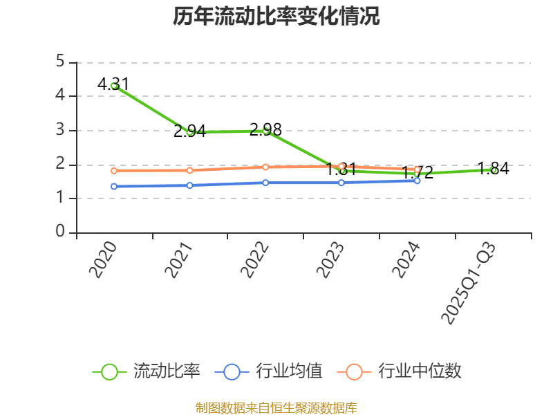 2025年前三季度,公司流动比率为1.84,速动比率为1.19。