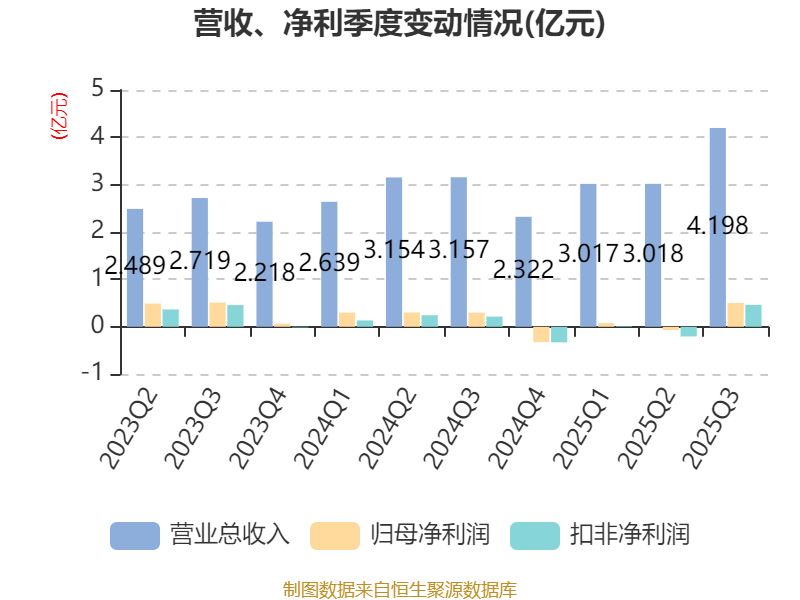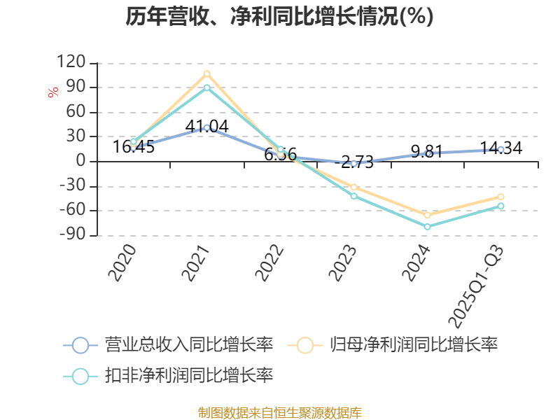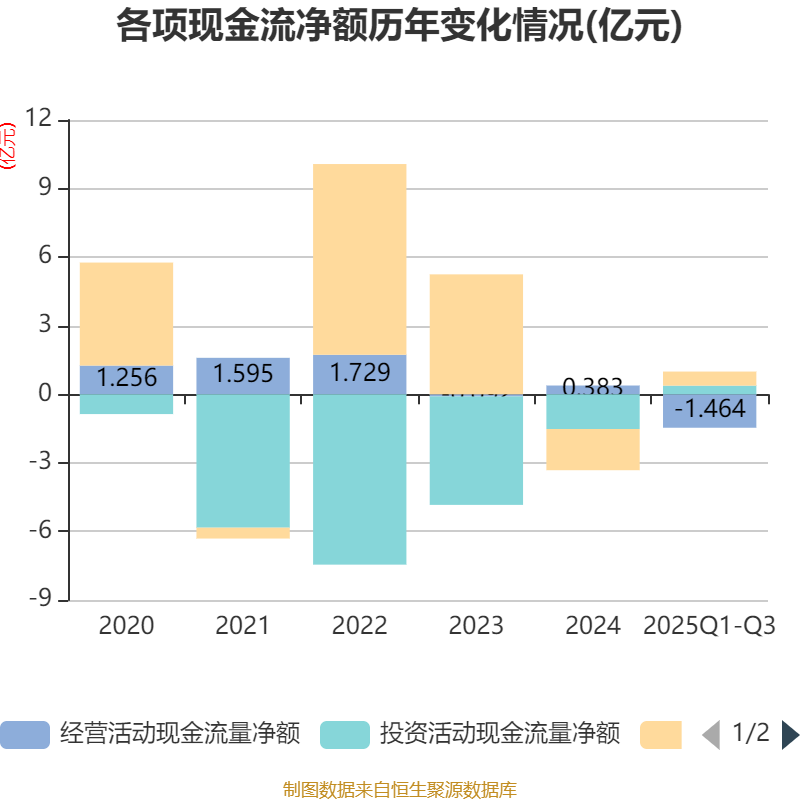 2025年前三季度,公司经营活动现金流净额为-1.46亿元,同比减少6022.11万元;筹资活动现金流净额6160.29万元,同比增加8062.27万元;投资活动现金流净额3776.11万元,上年同期为-8528.51万元。