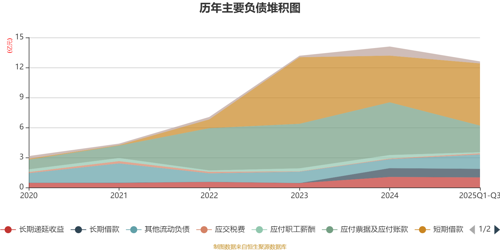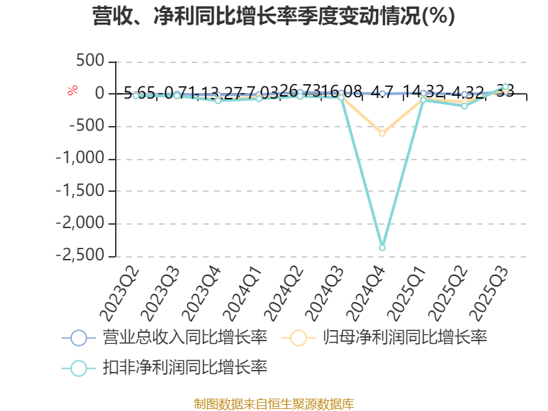 负债重大变化方面,截至2025年三季度末,公司应付票据及应付账款较上年末减少49.56%,占公司总资产比重下降6.38个百分点;短期借款较上年末增加33.49%,占公司总资产比重上升4.44个百分点;其他流动负债较上年末增加60.41%,占公司总资产比重上升1.48个百分点;应付职工薪酬较上年末减少68.24%,占公司总资产比重下降0.61个百分点。