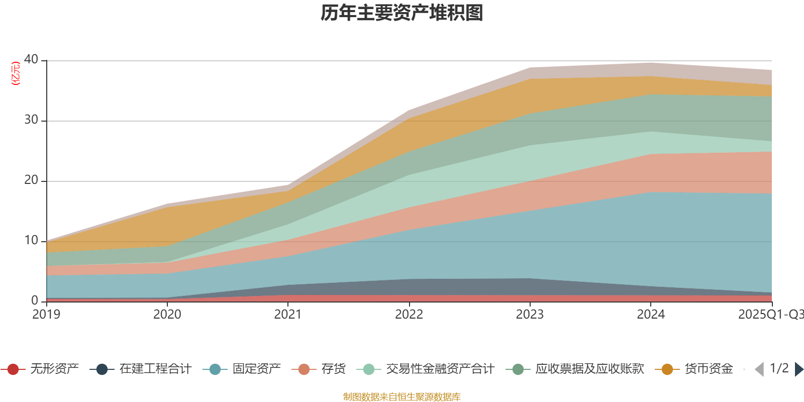 资产重大变化方面,截至2025年三季度末,公司交易性金融资产合计较上年末减少53.78%,占公司总资产比重下降4.91个百分点;应收票据及应收账款较上年末增加20.19%,占公司总资产比重上升3.74个百分点;固定资产较上年末增加5.08%,占公司总资产比重上升3.31个百分点;货币资金较上年末减少36.84%,占公司总资产比重下降2.64个百分点。