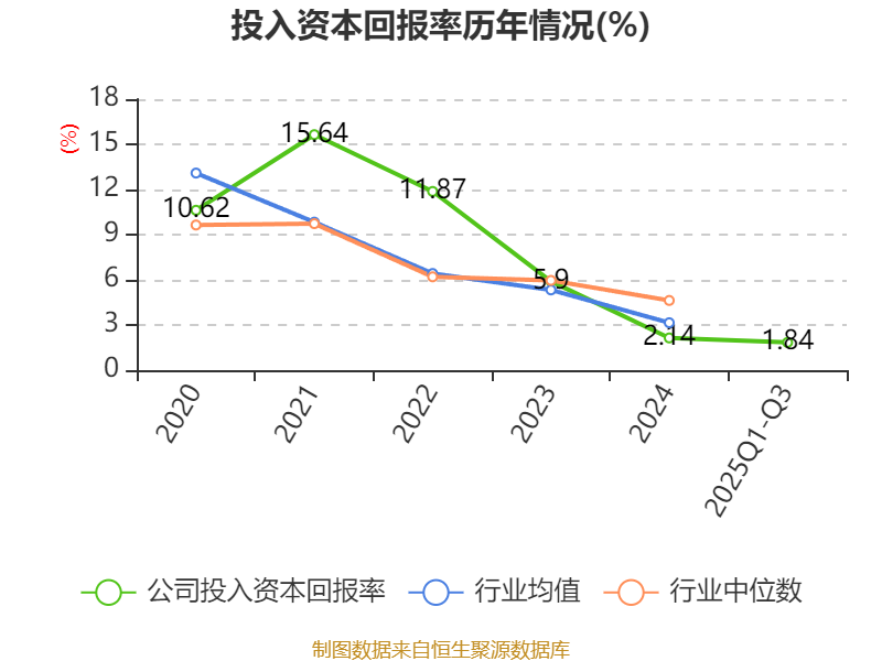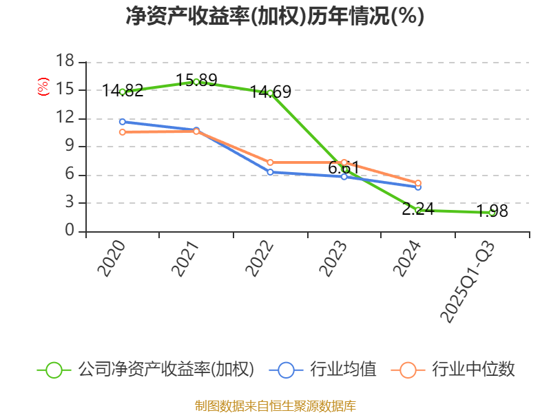 盈利能力方面, 2025年前三季度公司加权平均净资产收益率为1.98%,同比下降1.46个百分点。公司2025年前三季度投入资本回报率为1.84%,较上年同期下降1.17个百分点。