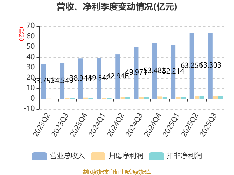 三季报显示,2025年三季度末的公司十大流通股东中,新进股东为赏根荣,取代了二季度末的葛卫东。在具体持股比例上,香港中央结算有限公司、朱岳海持股有所上升,睿远成长价值混合型证券投资基金持股有所下降。