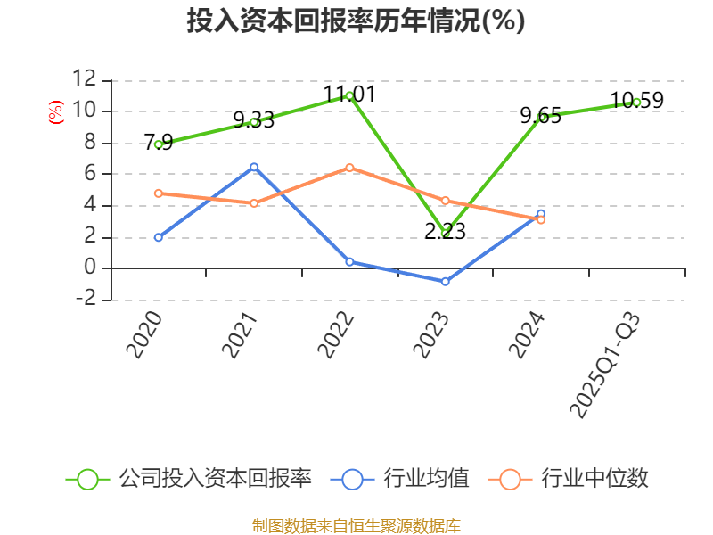 盈利能力方面, 2025年前三季度公司加权平均净资产收益率为16.69%,同比上升7.17个百分点。公司2025年前三季度投入资本回报率为10.59%,较上年同期上升4.54个百分点。