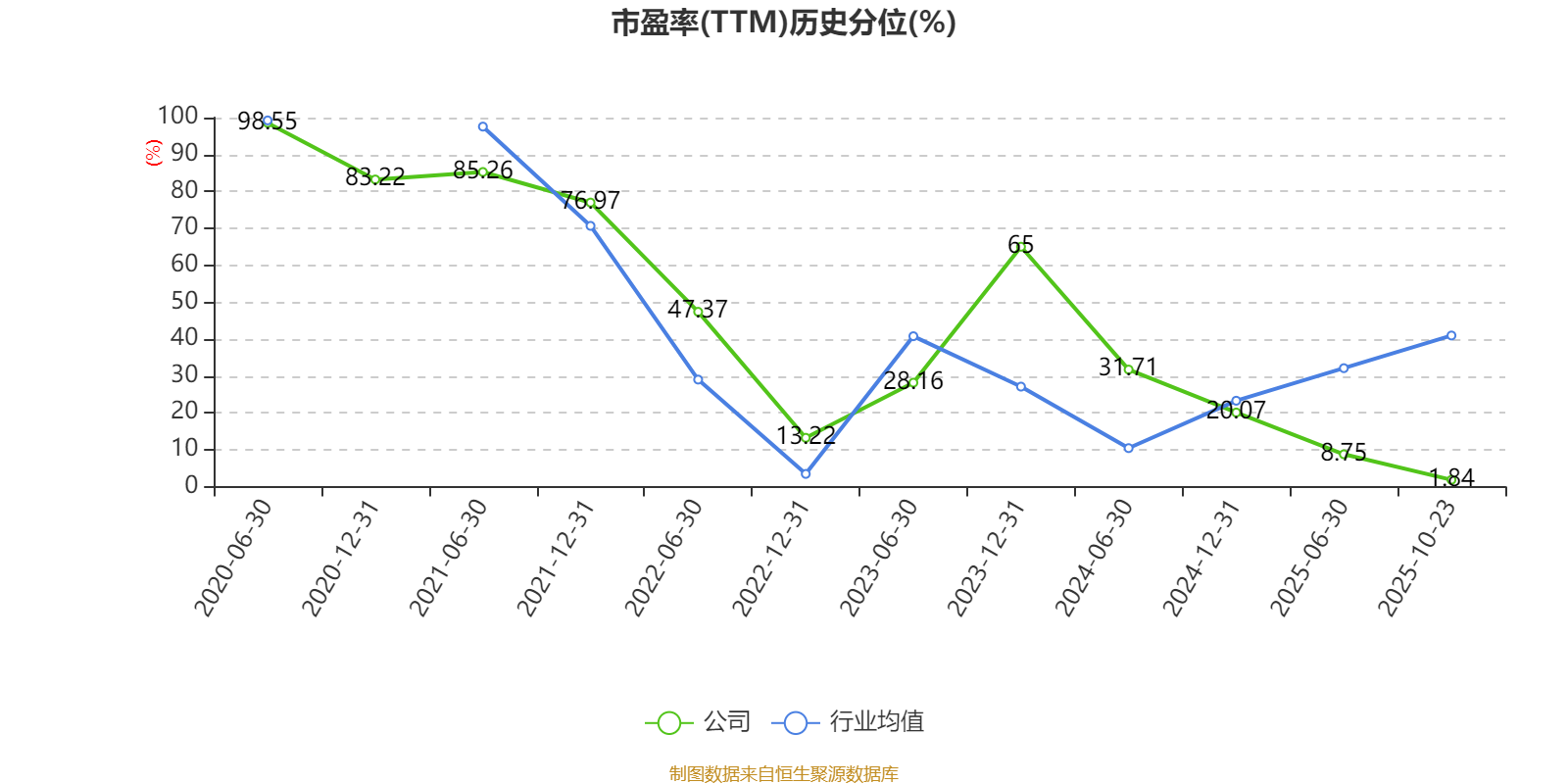 市盈率、市净率为负时,不显示当期分位数,会导致折线图中断。