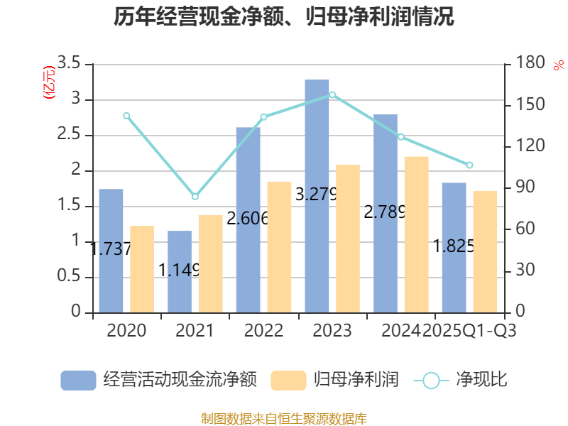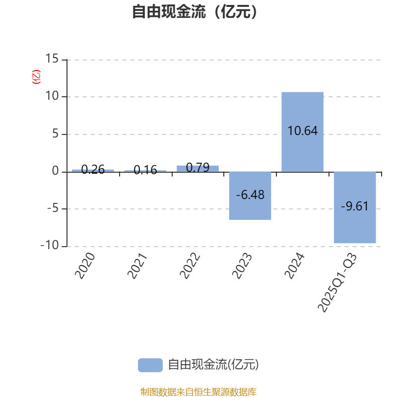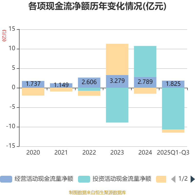 2025年前三季度,公司经营活动现金流净额为1.82亿元,同比下降13.81%;筹资活动现金流净额-8077.27万元,同比增加6979.29万元;投资活动现金流净额-10.7亿元,上年同期为1133.31万元。