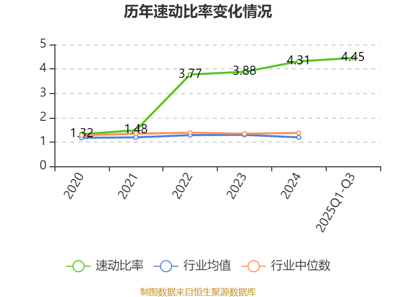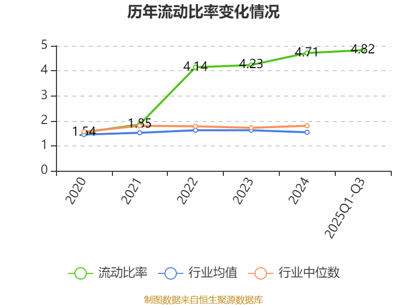 2025年前三季度,公司流动比率为4.82,速动比率为4.45。