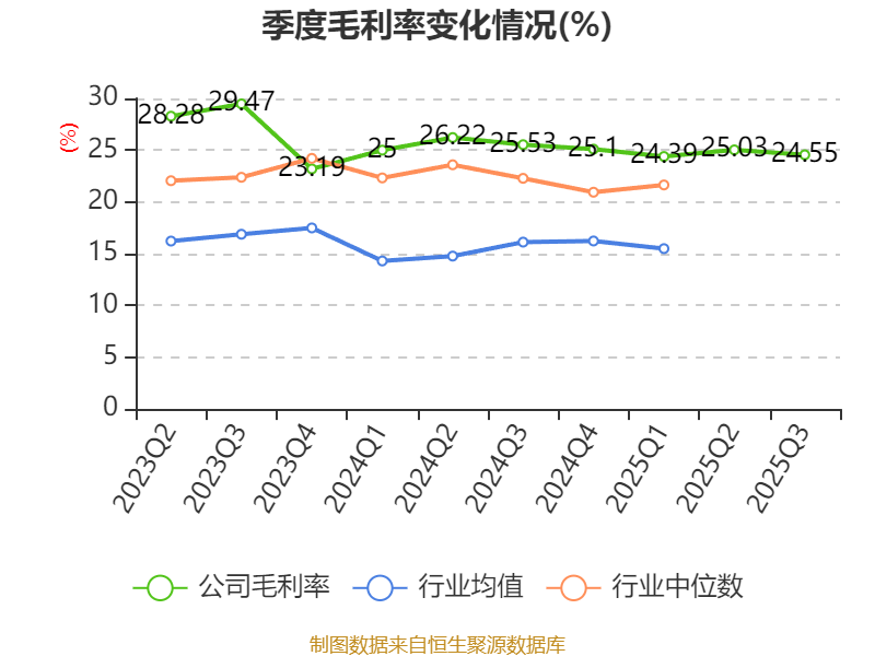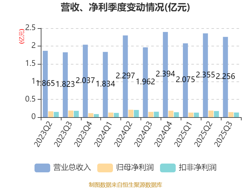2025年前三季度,公司流动比率为2.79,速动比率为2.03。