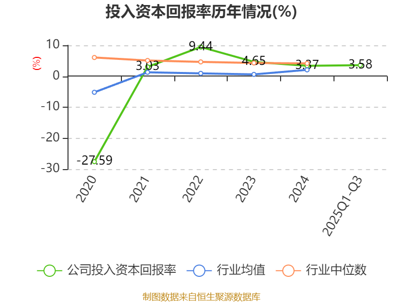盈利能力方面, 2025年前三季度公司加权平均净资产收益率为3.89%,同比上升1.5个百分点。公司2025年前三季度投入资本回报率为3.58%,较上年同期上升1.41个百分点。