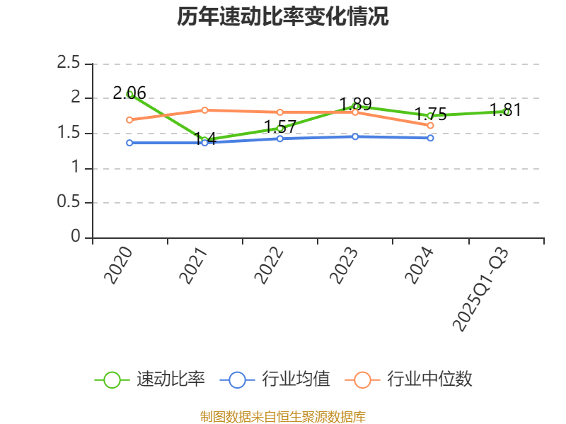 2025年前三季度,公司流动比率为2.3,速动比率为1.81。