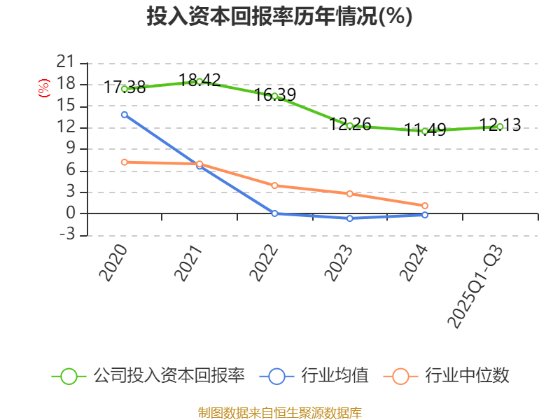 盈利能力方面, 2025年前三季度公司加权平均净资产收益率为13.8%,同比上升1.85个百分点。公司2025年前三季度投入资本回报率为12.13%,较上年同期上升2.19个百分点。