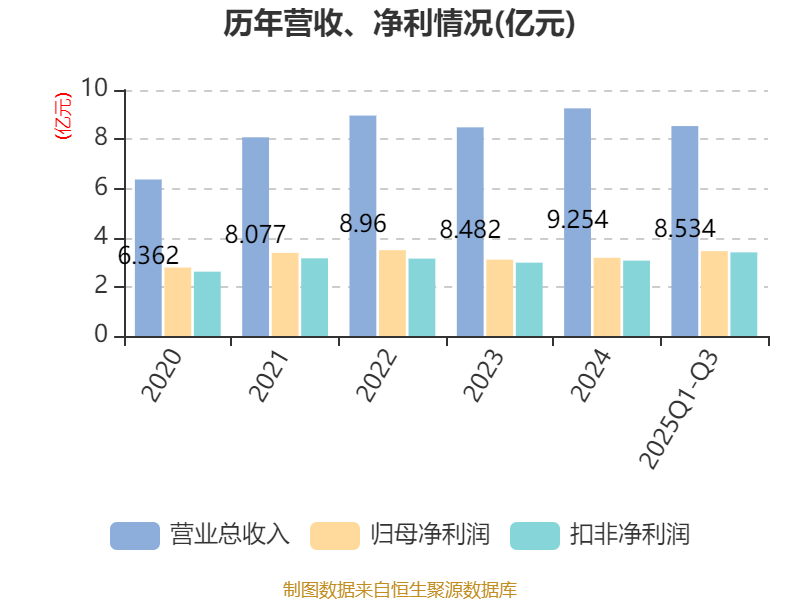 中证智能财讯我武生物(300357)10月24日披露2025年第三季度报告。前三季度公司实现营业总收入8.53亿元,同比增长16.86%;归母净利润3.45亿元,同比增长26.67%;扣非净利润3.4亿元,同比增长28.92%;经营活动产生的现金流量净额为2.87亿元,同比增长79.11%;报告期内,我武生物基本每股收益为0.6587元,加权平均净资产收益率为13.80%。