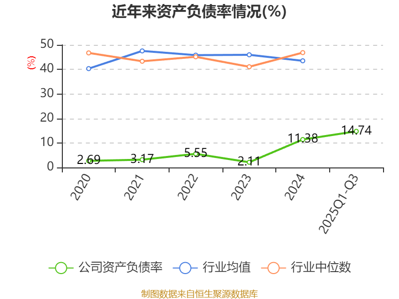 2025年前三季度,公司流动比率为6.16,速动比率为5.1。