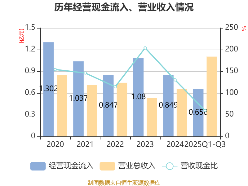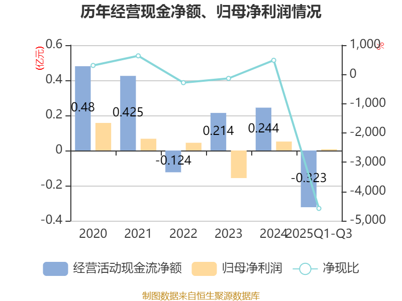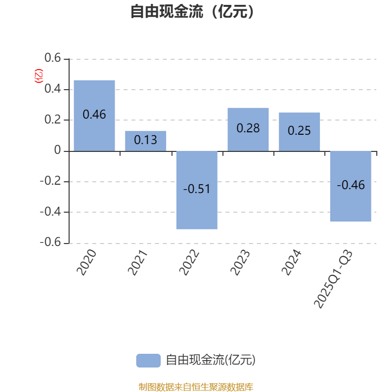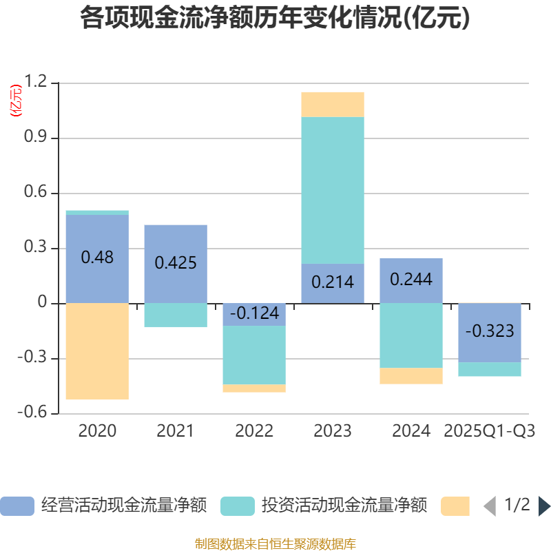 2025年前三季度,公司经营活动现金流净额为-3231.84万元,同比减少4587.18万元;筹资活动现金流净额17.17万元,同比增加185.75万元;投资活动现金流净额-756.91万元,上年同期为182.65万元。