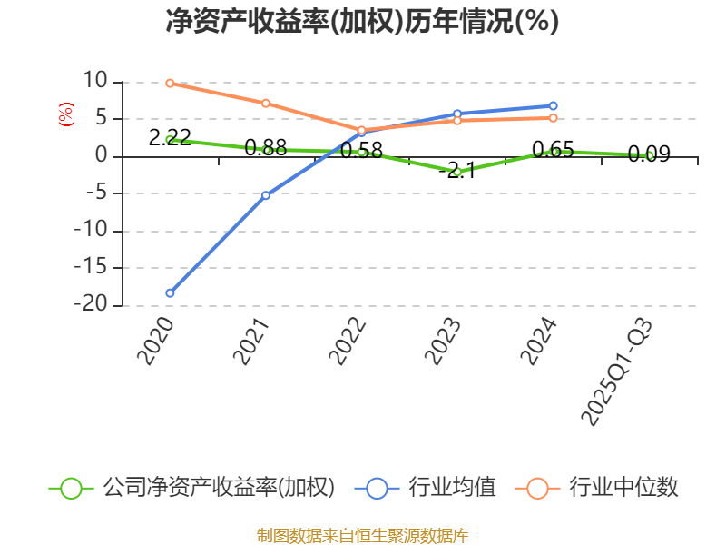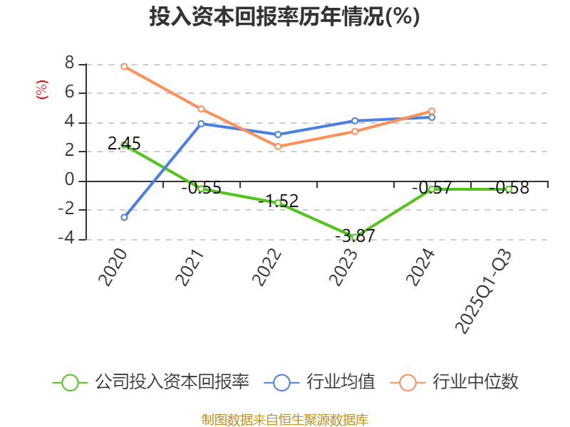 盈利能力方面, 2025年前三季度公司加权平均净资产收益率为0.09%,同比下降0.37个百分点。公司2025年前三季度投入资本回报率为-0.58%,较上年同期下降0.28个百分点。