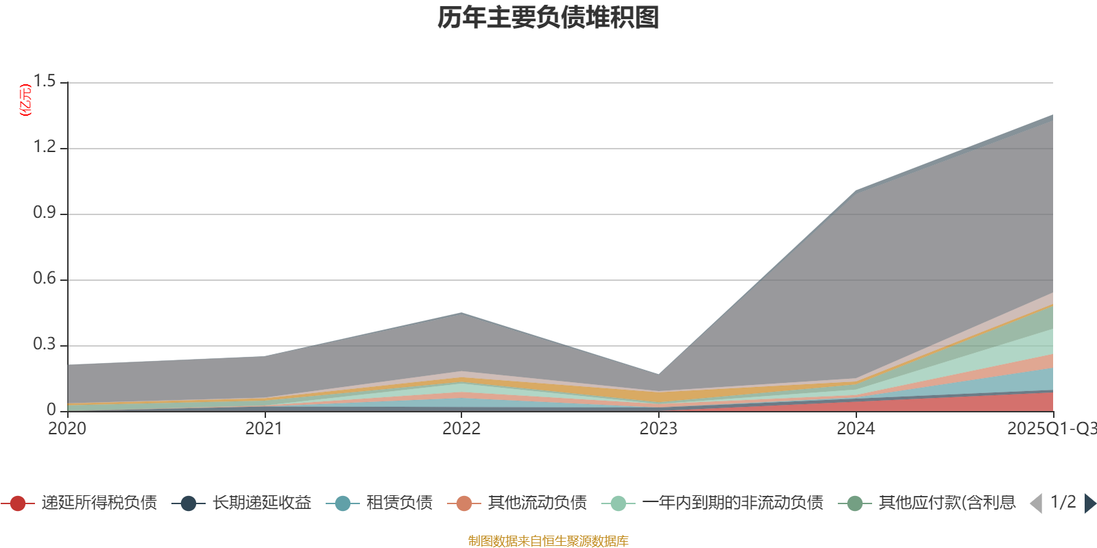 负债重大变化方面,截至2025年三季度末,公司租赁负债较上年末增加1640.55%,占公司总资产比重上升1.03个百分点;一年内到期的非流动负债较上年末增加367.3%,占公司总资产比重上升0.98个百分点;应付票据及应付账款较上年末减少6.83%,占公司总资产比重下降0.96个百分点;其他应付款(含利息和股利)较上年末增加347.98%,占公司总资产比重上升0.87个百分点。