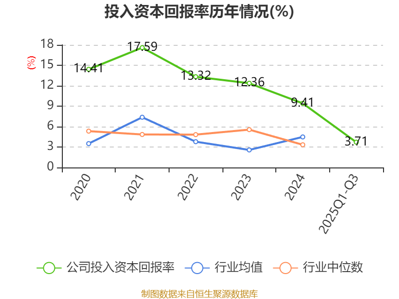 盈利能力方面, 2025年前三季度公司加权平均净资产收益率为5.16%,同比下降4.78个百分点。公司2025年前三季度投入资本回报率为3.71%,较上年同期下降4.81个百分点。