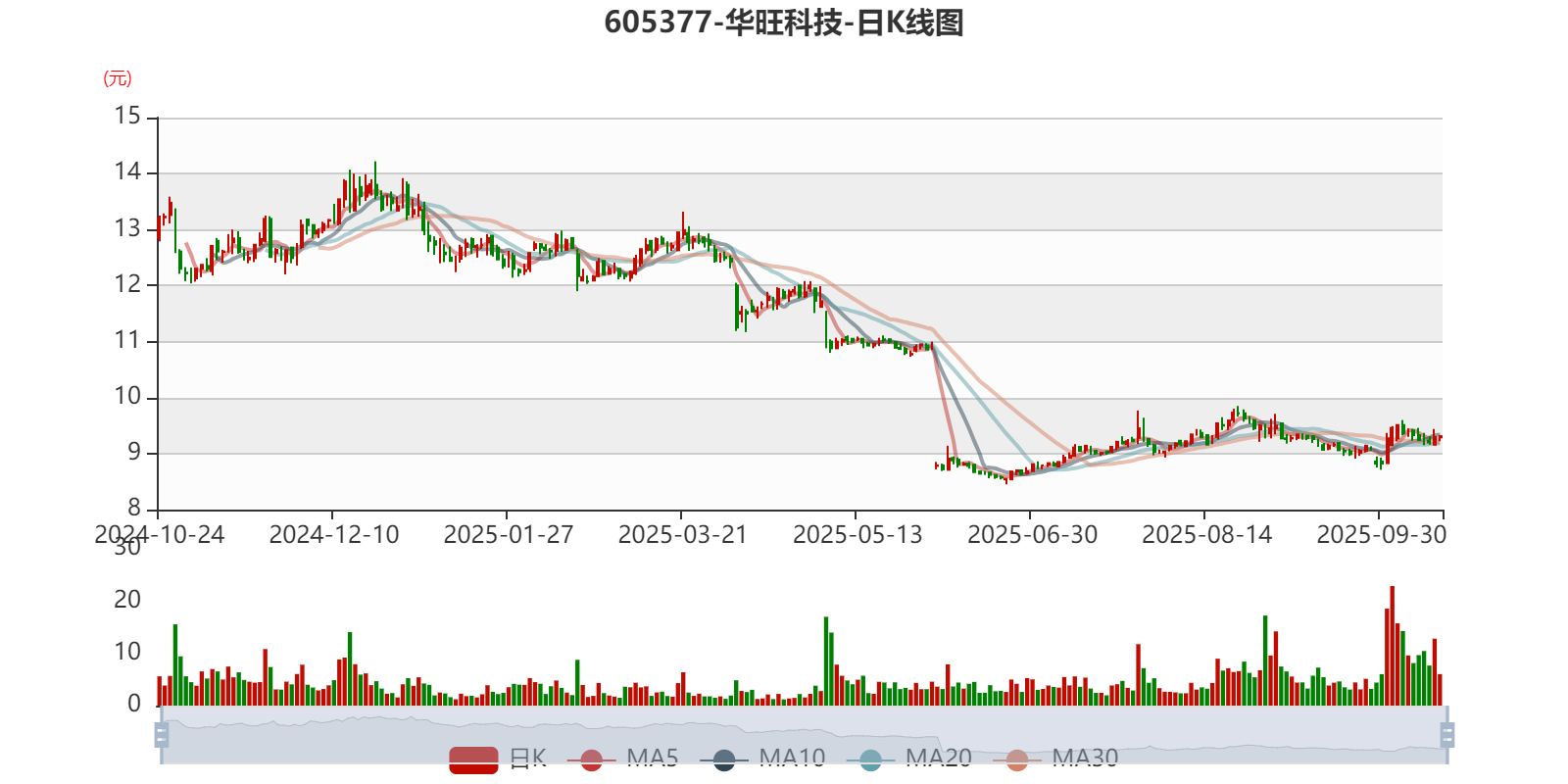中证智能财讯华旺科技(605377)10月24日披露2025年第三季度报告。前三季度公司实现营业总收入24.25亿元,同比下降14.93%;归母净利润2.06亿元,同比下降49.46%;扣非净利润2.03亿元,同比下降45.69%;经营活动产生的现金流量净额为2.11亿元,同比下降42.24%;报告期内,华旺科技基本每股收益为0.37元,加权平均净资产收益率为5.16%。