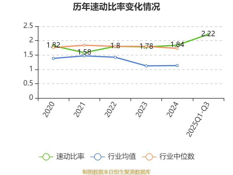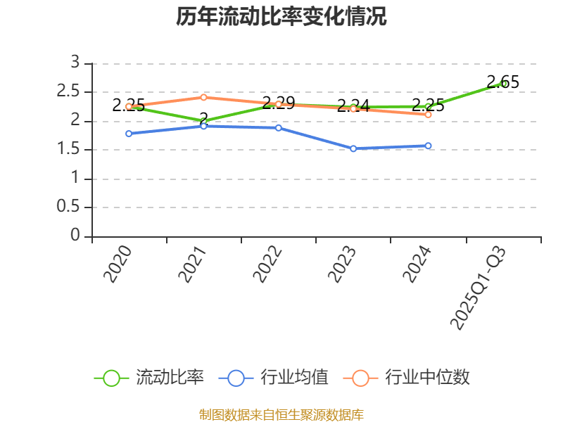 2025年前三季度,公司流动比率为2.65,速动比率为2.22。