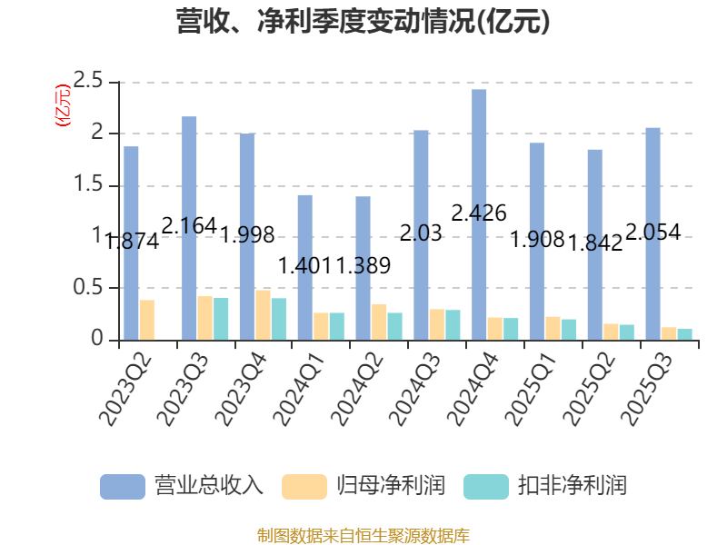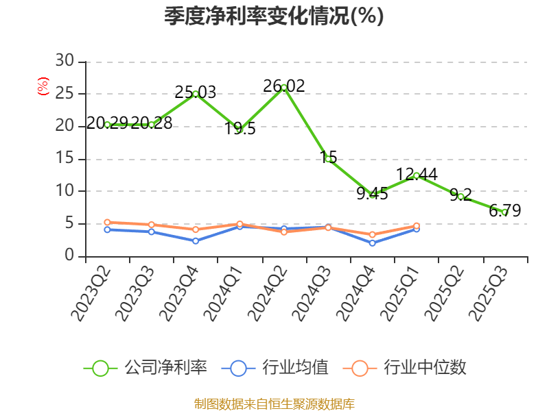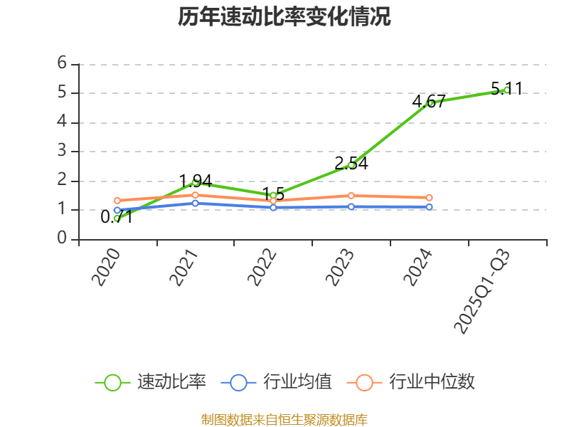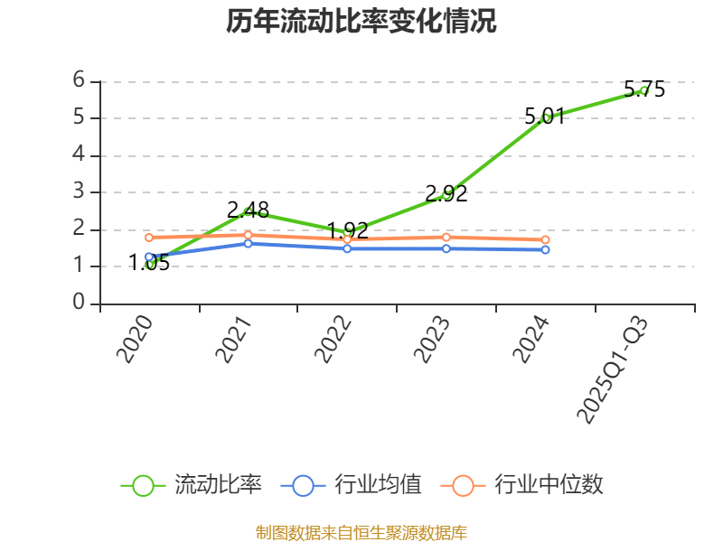 2025年前三季度,公司流动比率为5.75,速动比率为5.11。