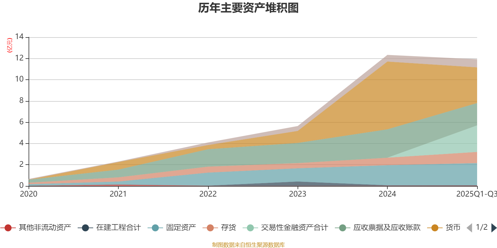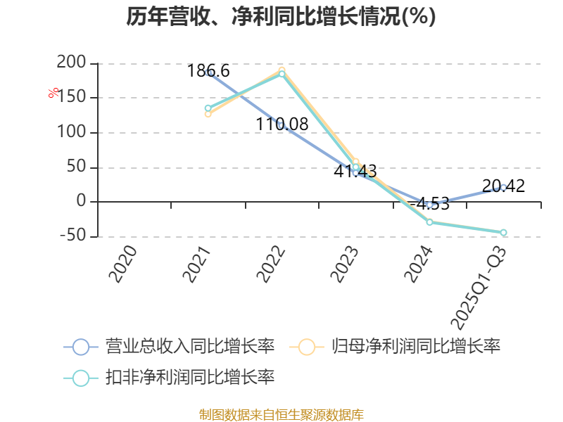 资产重大变化方面,截至2025年三季度末,公司货币资金较上年末减少47.35%,占公司总资产比重下降23.52个百分点;交易性金融资产合计占公司总资产的20.98%,上年末为0;应收票据及应收账款较上年末减少21.53%,占公司总资产比重下降4.08个百分点;存货较上年末增加50.03%,占公司总资产比重上升3.15个百分点。