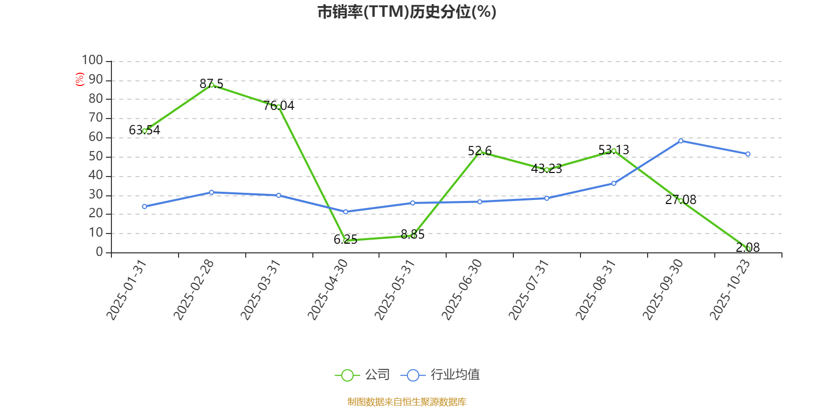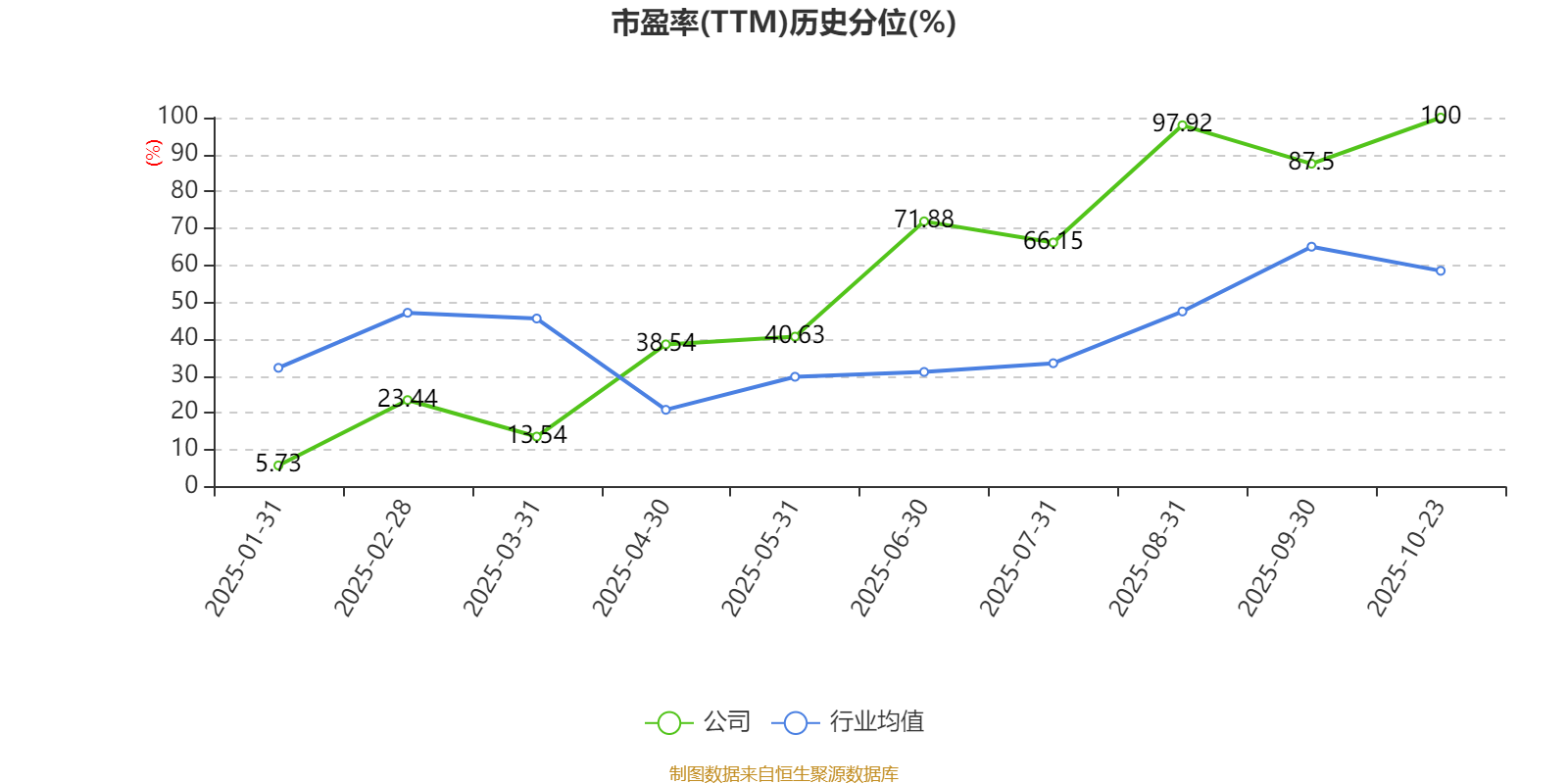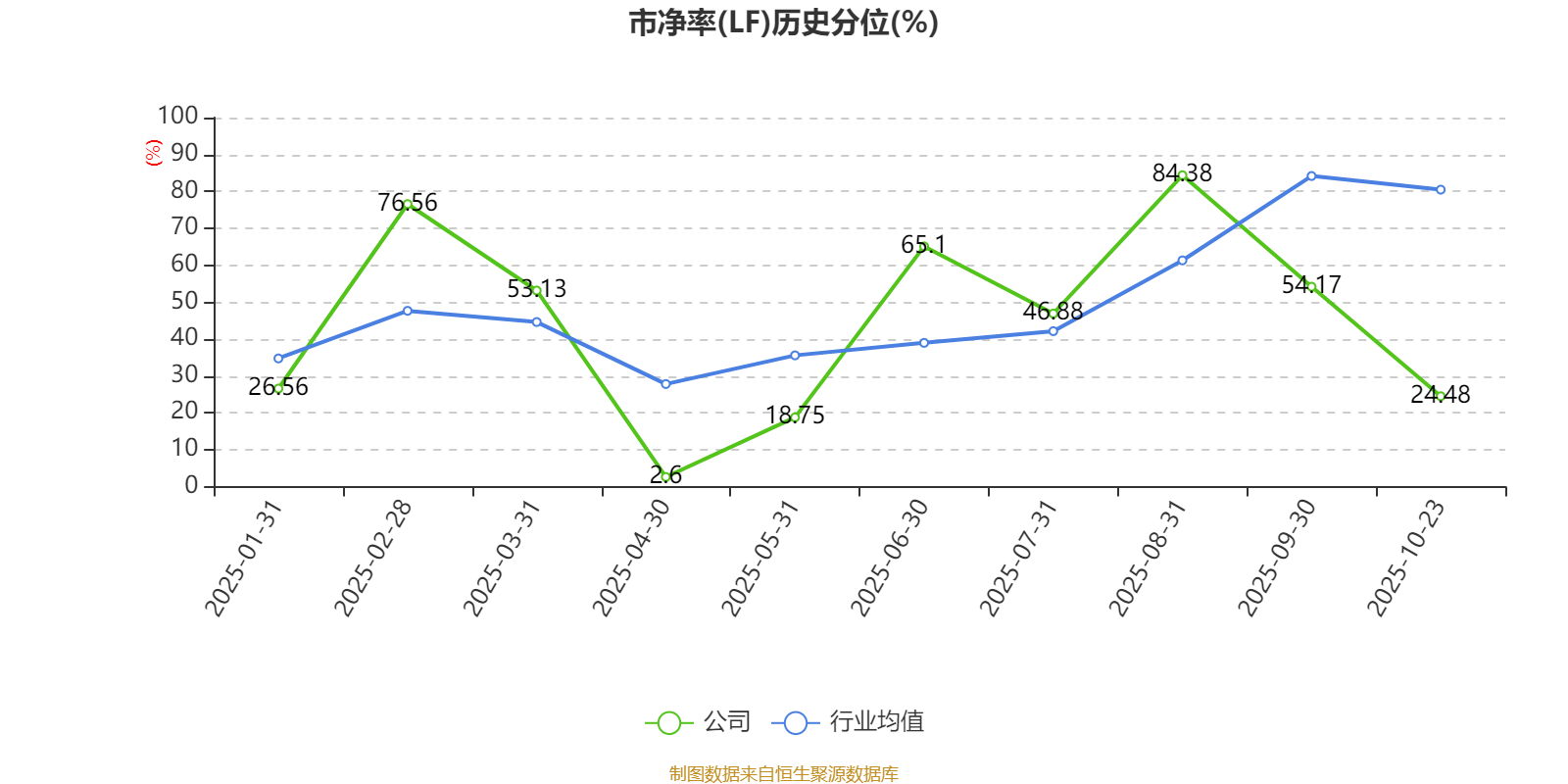 市盈率、市净率为负时,不显示当期分位数,会导致折线图中断。