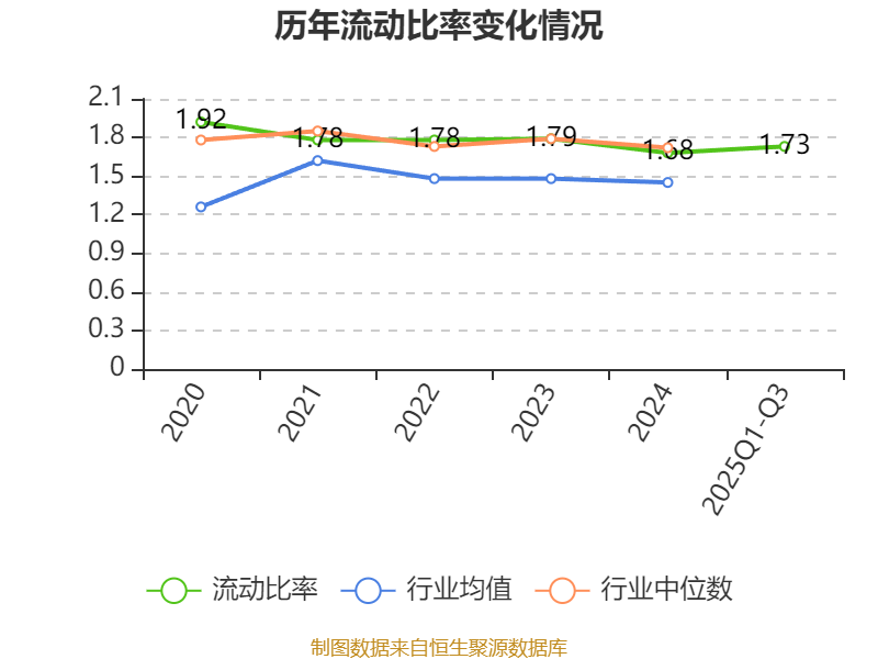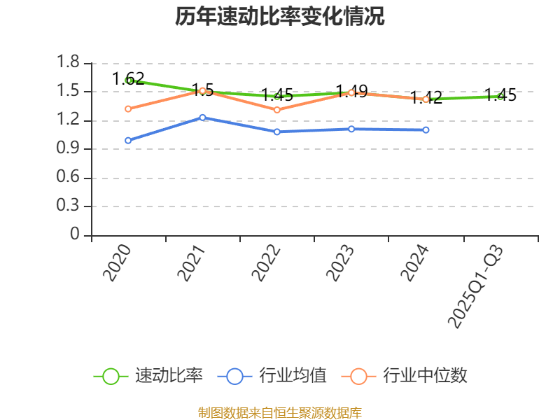 2025年前三季度,公司流动比率为1.73,速动比率为1.45。