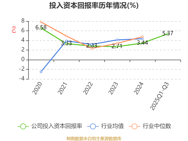 盈利能力方面, 2025年前三季度公司加权平均净资产收益率为5.29%,同比上升1.65个百分点。公司2025年前三季度投入资本回报率为5.37%,较上年同期上升1.86个百分点。