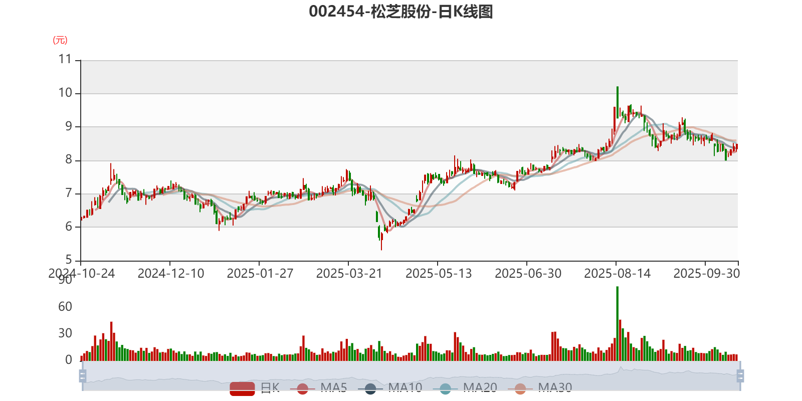 中证智能财讯松芝股份(002454)10月24日披露2025年第三季度报告。前三季度公司实现营业总收入38.69亿元,同比增长7.75%;归母净利润2.13亿元,同比增长50.21%;扣非净利润1.86亿元,同比增长70.65%;经营活动产生的现金流量净额为1.24亿元,同比增长257.51%;报告期内,松芝股份基本每股收益为0.34元,加权平均净资产收益率为5.29%。