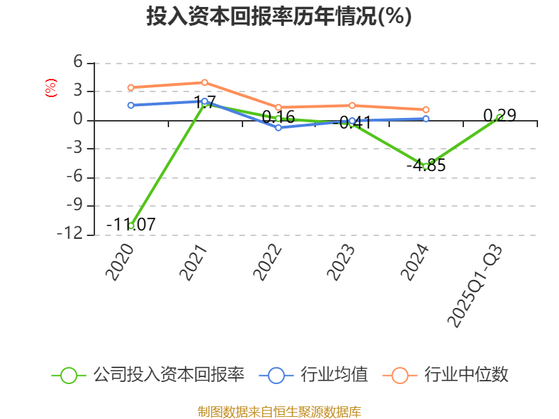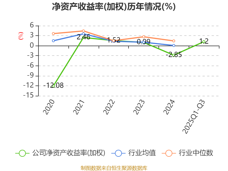 盈利能力方面, 2025年前三季度公司加权平均净资产收益率为1.2%,同比上升2.65个百分点。公司2025年前三季度投入资本回报率为0.29%,较上年同期上升3.33个百分点。