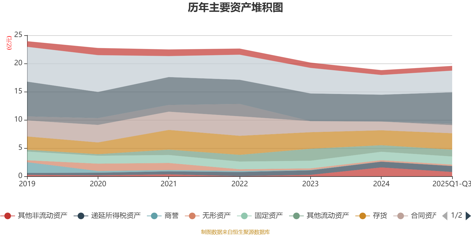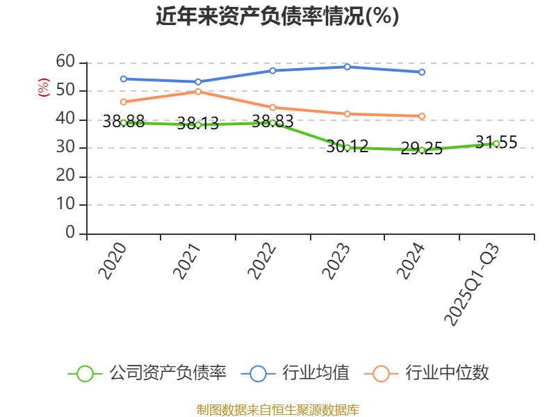 资产重大变化方面,截至2025年三季度末,公司其他非流动资产较上年末减少52%,占公司总资产比重下降4.48个百分点;应收票据及应收账款较上年末增加17.36%,占公司总资产比重上升3.25个百分点;交易性金融资产合计占公司总资产的1.33%,上年末为0;货币资金较上年末增加9.58%,占公司总资产比重上升1.01个百分点。