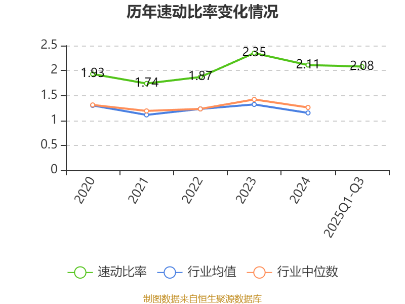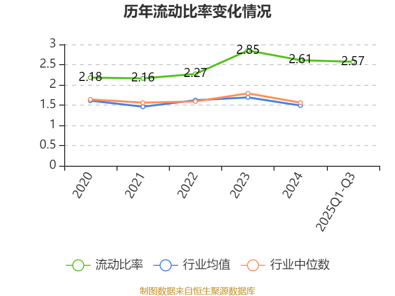 2025年前三季度,公司流动比率为2.57,速动比率为2.08。