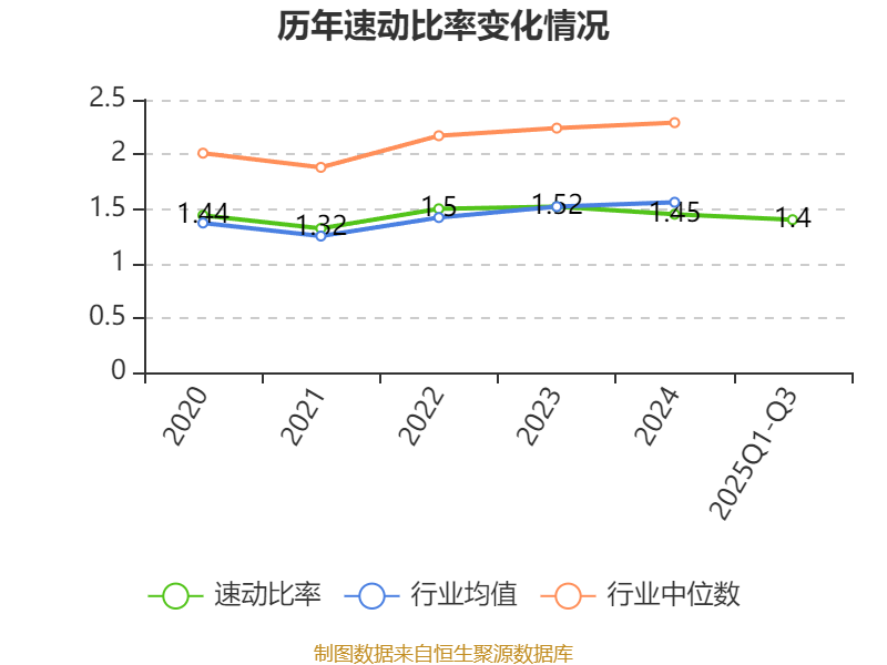 2025年前三季度,公司流动比率为1.6,速动比率为1.4。