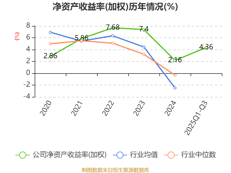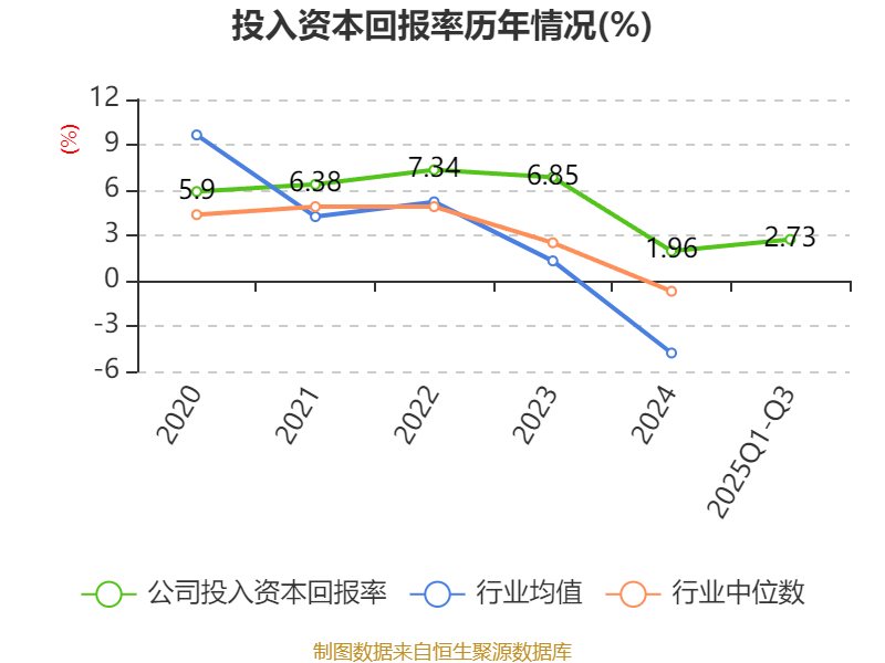 盈利能力方面, 2025年前三季度公司加权平均净资产收益率为4.36%,同比上升7.11个百分点。公司2025年前三季度投入资本回报率为2.73%,较上年同期上升5.75个百分点。